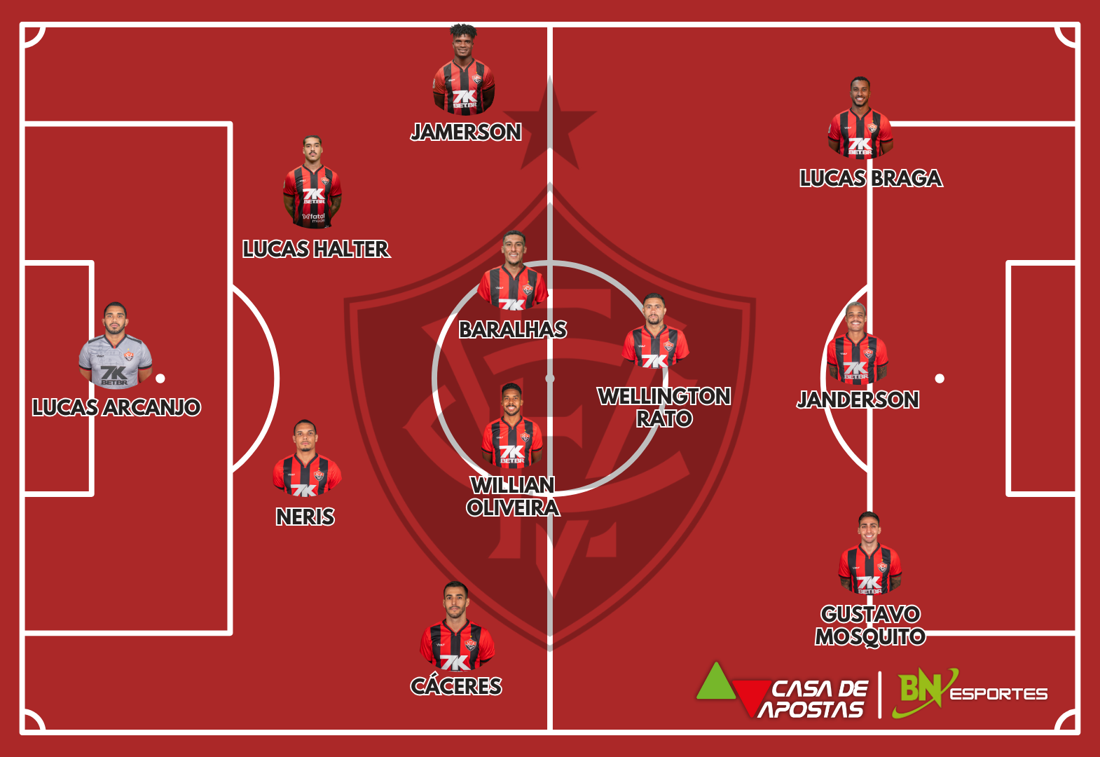 Vitória: Lucas Arcanjo; Raul Cáceres, Neris, Lucas Halter e Jamerson; Baralhas, Willian Oliveira e Wellington Rato; Lucas Braga, Gustavo Mosquito e Janderson. Técnico: Thiago Carpini.