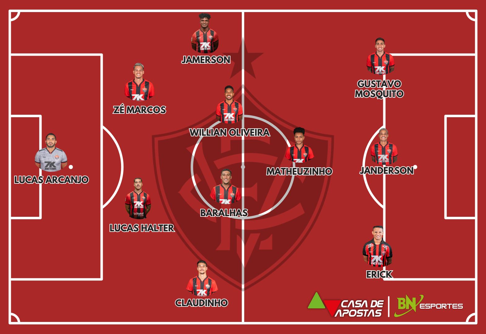 Vitória: Lucas Arcanjo; Claudinho, Lucas Halter, Zé Marcos e Jamerson; Willian Oliveira, Baralhas e Matheuzinho; Erick, Gustavo Mosquito e Janderson. Técnico: Thiago Carpini.