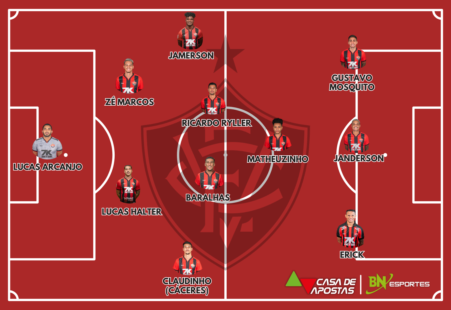 Vitória: Lucas Arcanjo; Claudinho (Cáceres), Lucas Halter, Zé Marcos e Jamerson; Ricardo Ryller, Baralhas e Matheuzinho; Erick, Janderson e Gustavo Mosquito. Técnico: Thiago Carpini.