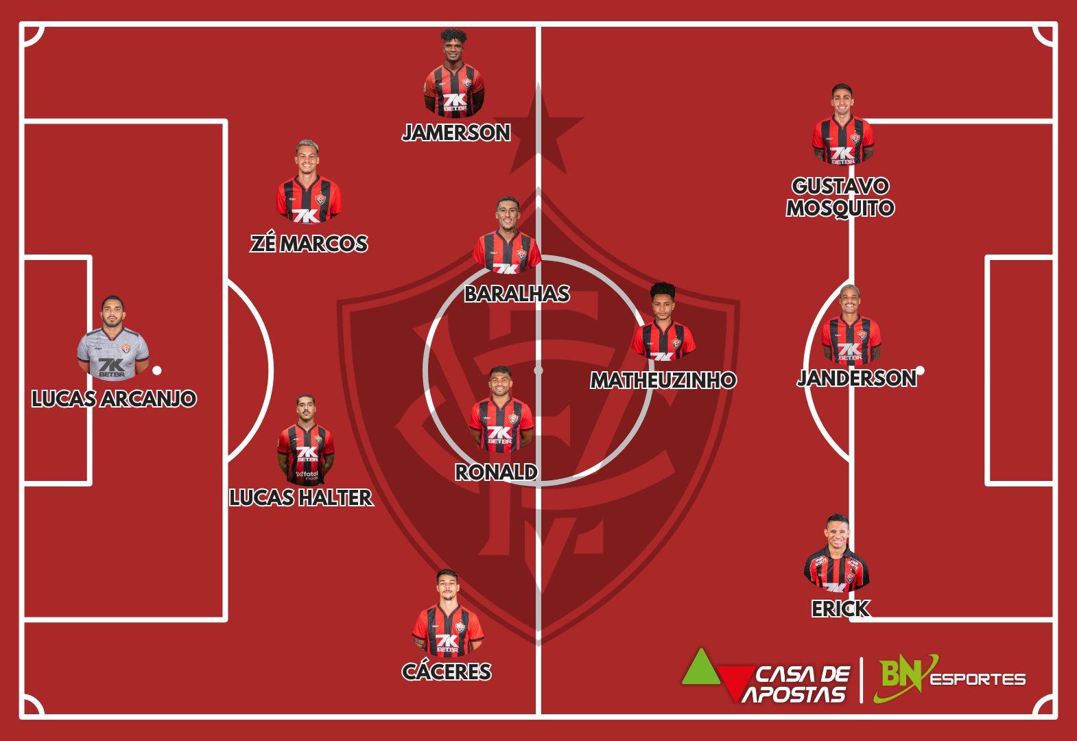 Vitória: Lucas Arcanjo; Claudinho, Lucas Halter, Zé Marcos e Jamerson; Baralhas, Ronald e Matheuzinho; Erick, Gustavo Mosquito e Janderson. Técnico: Thiago Carpini.