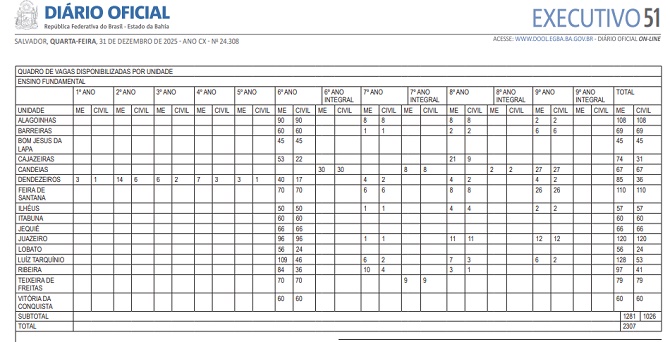 A Secretaria da Educação da Bahia e o Comando-Geral da Polícia Militar deu início nesta segunda-feira (5), pela internet, as inscrições [gráfico acima] para o preenchimento de vagas disponibilizadas pelos 16 (dezesseis) Colégios da Polícia Militar (CPMs) do Estado da Bahia. Após a inscrição o estudante passa pelo ato do sorteio, alcançando a matrícula em cada unidade escolar e eventual transferência, após 01 (um) ano letivo.