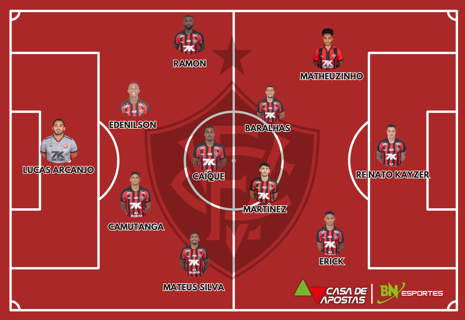 Vitória: Lucas Arcanjo; Mateus Silva, Camutanga, Edenilson e Ramon; Caíque, Baralhas e Martínez; Erick, Matheuzinho e Renato Kayzer. Técnico: Jair Ventura.