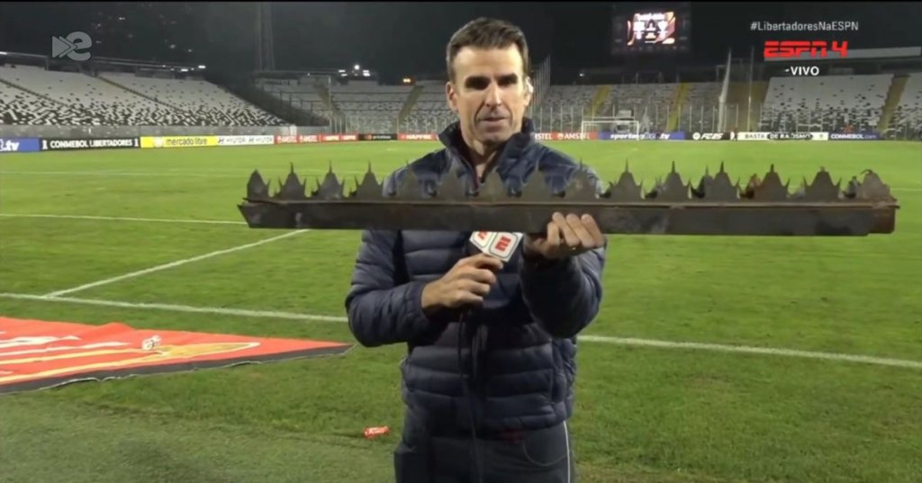 Durante a invasão, barras de ferro foram usadas e arremessadas para dentro de campo. O jornalista Mendel Bydlowski, da ESPN, mostrou uma das hastes encontradas no gramado, com pontas afiadas.