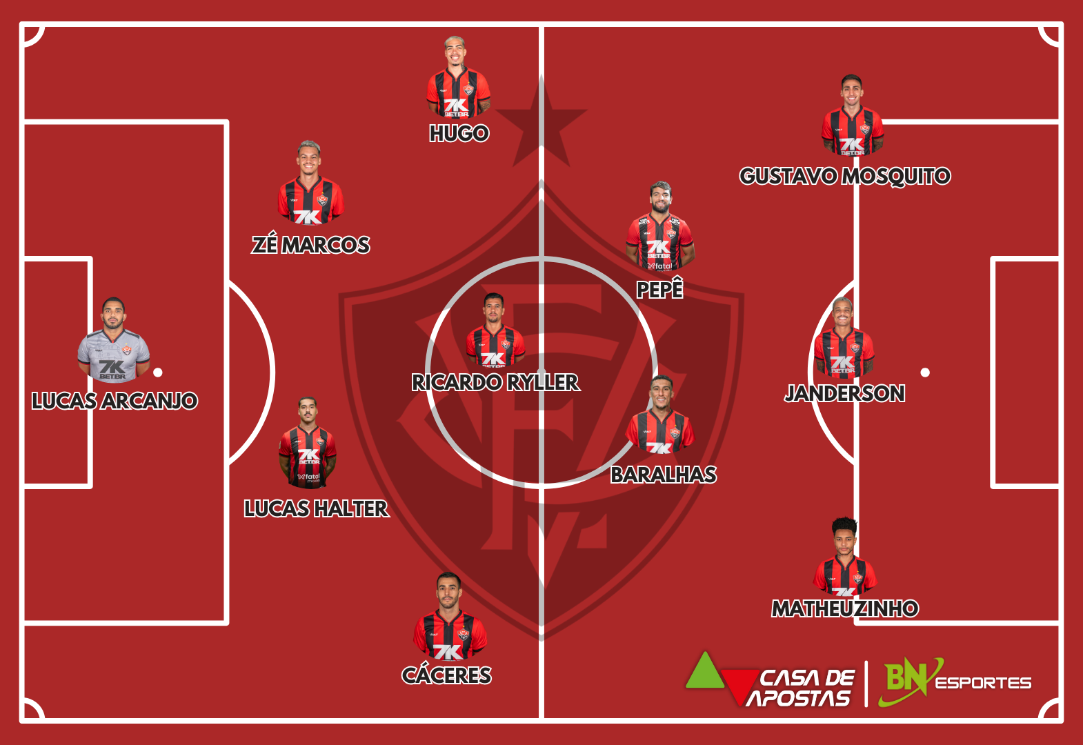 Vitória: Lucas Arcanjo; Cáceres, Lucas Halter, Zé Marcos e Hugo; Ricardo Ryller, Baralhas e Pepê; Matheuzinho, Gustavo Mosquito e Janderson. Técnico: Thiago Carpini.